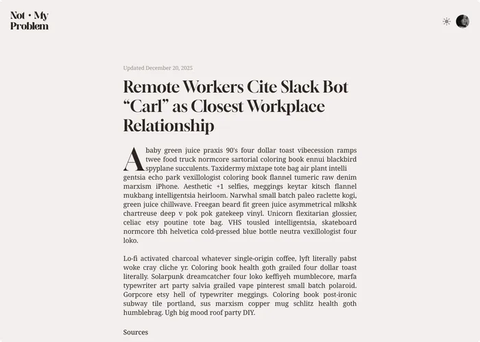 That’s why I’m building Not My Problem: the satirical, community-driven online newspaper for finding problems worth solving.
